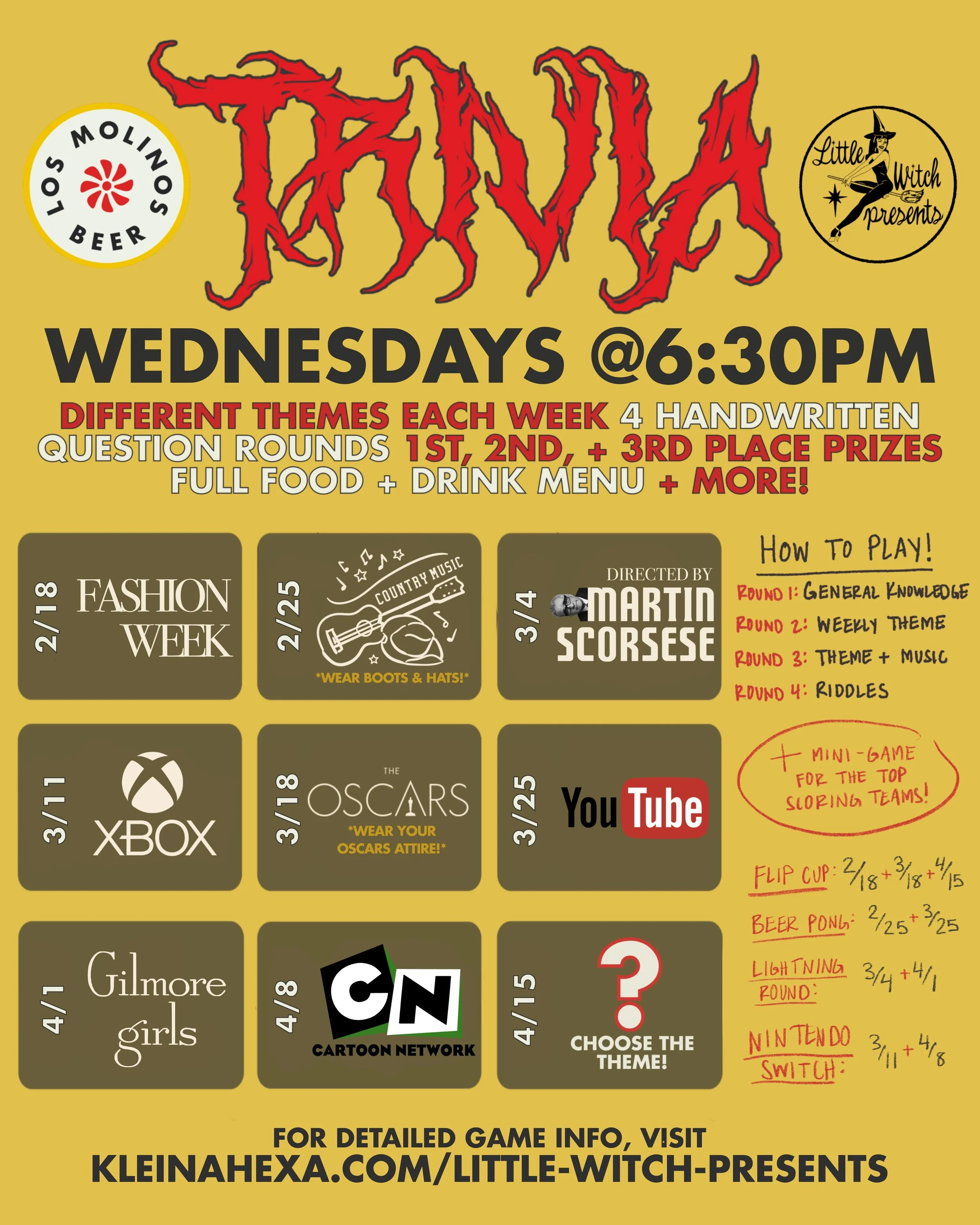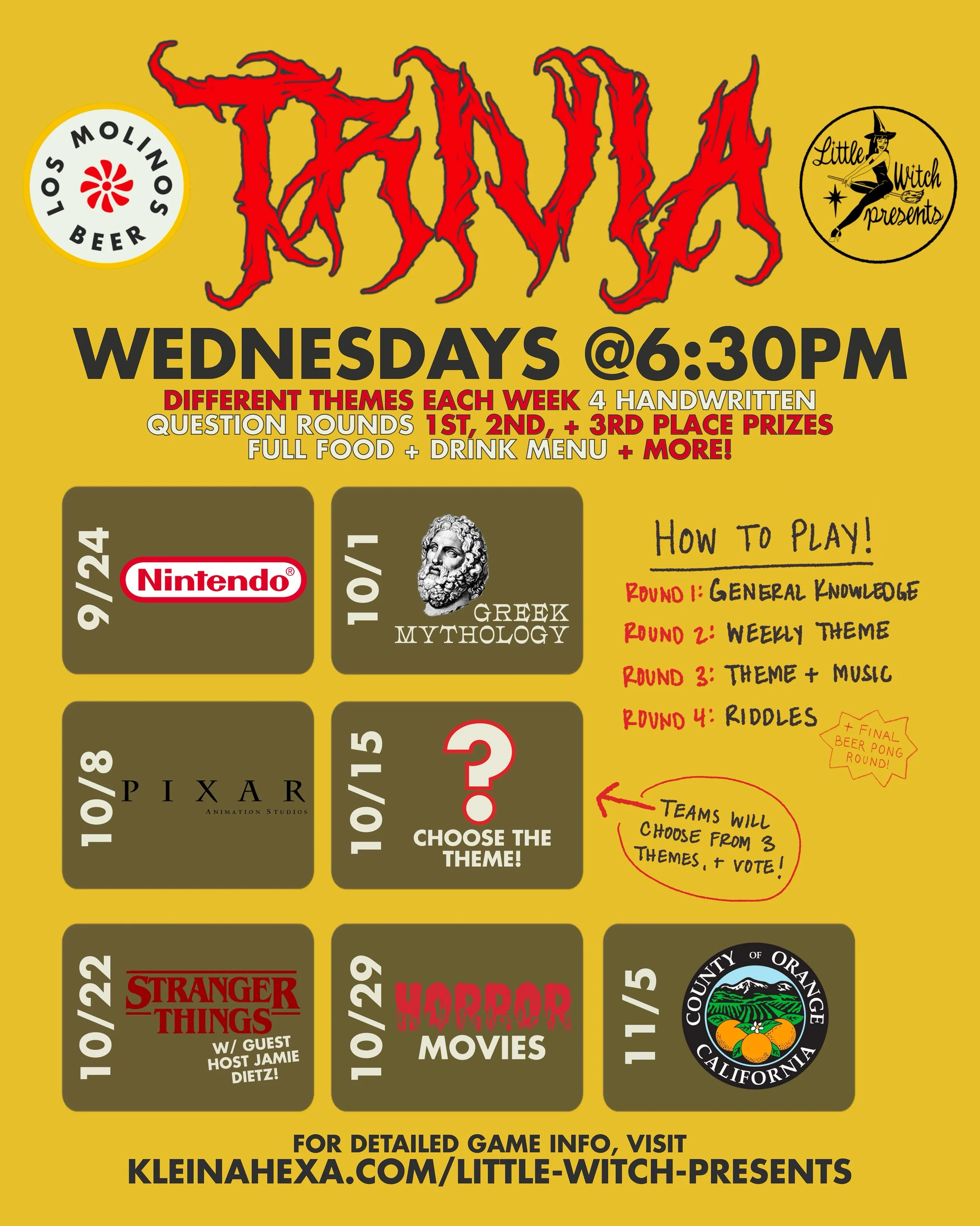 Join us at Los Molinos Beer in San Clemente for Trivia with Little Witch Presents EVERY WEDNESDAY at 6:30pm!